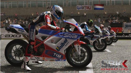 Das beste SBK-Erlebnis aller Zeiten! Pünktlich zum 25. jährigem Jubiläum der Super-Bike WM erscheint mit SBK Generations eine einzigartige Challenge, die Vergangenheit, Gegenwart und Zukunft miteinander vereint - ein unglaubliches Aufgebot von Super-Bikes, Rennstrecken und Weltmeisterschaften aus den letzten vier Jahren. Erleben Sie den spektakulären Wettkampf um den SBK Championship Titel, den fast 500 Millionen Zuschauer im TV verfolgen!Schlüpfen Sie in die Rolle Ihres Lieblings-Rennfahrers, wählen Sie eines der 60 Top Motorräder und rasen Sie an die Spitze der Weltrangliste. SBK Generations bietet neben jeder Menge Action und Spielspaß eine riesige Auswahl an Super-Bikes der Top Marken: Aprilia, BMW, Ducati, Honda, Kawasaki, KTM, MV Agusta, Suzuki, Triumph und Yamaha. Wählen Sie aus 220 Fahrern, 17 Strecken, 140 Teams und zahlreichen unterschiedlichen Renn-Modi: Fahren Sie klassische Rennen, bezwingen Sie die Challenges oder kreieren Sie Ihren eigenen Rennfahrer und gestalten Sie Ihre persönliche Rennkarriere. Überzeugen Sie sich vom verbesserten Antrieb, den neuen visuellen Effekten und dem brandneuen Spielmodus SBK Experience.Gehen Sie an den Start, geben Sie Gas und werden Sie die neue SBK Legende Tracks (17): Aragn (Spain), Assen (Holland), Brno (Czech Republic), Donington Park (England), Imola (Italy), Kyalami (South Africa), Losail (Qatar), Magny Cours (France), Miller Motorsport Park (USA), Misano (San Marino), Monza (Italy), Nürburgring (Germany), Phillip Island (Australia), Portimao (Portugal), Silverstone (England)Features:- Das offizielle Spiel zur Super-Bike Weltmeisterschaft- 4 Meisterschaften: das gesamte SBK Abenteuer von 2009-2012- Konkurrenzlos: Das einzige Motorrad Spiel des Jahres!- 60 Bikes, 220 Fahrer, 17 Strecken und 140 Teams...