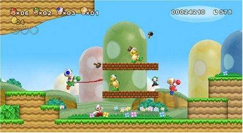 Lange erwartet und heiß ersehnt, startet der Klassiker unter den Jump'n'Runs jetzt endlich auch auf Wii. Die Fans des berühmtesten Klempners der Welt dürfen sich auf ein umfangreiches, turbulentes Abenteuer freuen. Und das allerbeste: Bis zu vier Spieler können sich dabei gemeinsam ins Vergnügen stürzen. Die Story: Oberschurke Bowser hat wieder einmal Prinzessin Peach entführt. Ehrensache für Mario, seine Freundin zu befreien. Aber diesmal ist er dabei nicht auf sich allein gestellt! Bis zu vier Wii-Spieler gleichzeitig können Bowser hinterher jagen, indem sie als Mario, als sein Bruder Luigi oder als einer von zwei Toads agieren. Um zu trainieren, kann man den Spaß natürlich auch weiterhin allein genießen. Aber sobald Freunde oder Verwandte dahinterkommen, wird man nicht lange solo bleiben......