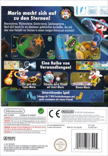 Marios erstes Wii-Abenteuer lässt alte und neue Videospiel-Fans abheben vor Staunen Ein kleiner Schritt für einen Klempner – ein großer für die Videospielwelt: Mit Nintendos neuer Konsole Wii ist die Welt endgültig zu klein für Superstar Mario. In ersten Wii-Abenteuer Super Mario Galaxy hebt der knubbelige Kultklempner ab ins Weltall – und rückt die Messlatte für Jump’n’Runs in neue Sphären. Nintendos legendärer Spieleentwickler Shigeru Miyamoto und sein Team haben sich mit Super Mario Galaxy wieder einmal selbst übertroffen und sich von der neuen Bewegungsfreiheit der Wii zu irrwitzigen Spielideen inspirieren lassen, die nicht nur eingefleischte Mario-Fans verzücken dürften. Denn dank der kabellosen Wii-Fernbedienung mit integriertem Bewegungssensor eröffnet Wii sogar dem Videospiel-Novizen einen intuitiven Einstieg ins schrillste Universum aller Zeiten. Da heißt es nur noch: rein ins galaktische Spielvergnügen! Ein Trupp extraterrestrischer Schurken hat Prinzessin Peach in die unendlichen Weiten des Weltalls verschleppt. Natürlich macht sich Mario gleich auf zu einer intergalaktischen Befreiungsmission über bizarre Planeten und durch unglaubliche Welten, die nie ein Klempner zuvor gesehen hat. Unterwegs gilt es, so viele Sterne wie möglich einzusammeln. Allerdings machen ihm dabei fiese Aliens das Leben schwer, abgesehen von den zahlreichen anderen, wahnwitzigen Gefahren, die überall lauern. Ein oder zwei Spieler können sich mit Super Mario ins Weltraum-Abenteuer katapultieren. Dabei haben sie alle Hände voll zu tun, denn Super Mario Galaxy nutzt die Möglichkeiten der Wii-Fernbedienung und des Nunchuk-Controllers optimal aus. Rennend, hüpfend, springend, wirbelnd und schwebend geht es durch die unendlichen Weiten. Mario verblüfft unterwegs mit völlig neuen Bewegungsarten. In schwierigen Fällen kann es dann auch helfen, die Wii-Fernbedienung einmal kräftig durchzuschütteln! Außerdem sammelt man damit auch ganz bequem Sterne und Gegenstände ein - indem man einfach darauf deutet. Es ist diese einzigartige Mischung aus detailfreudiger Meistergrafik und liebevoll-anarchischen Spiel-Ideen, die Super Mario Galaxy abgehen lässt wie eine Rakete. Nintendo-Fans und solche,......