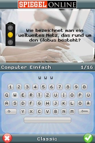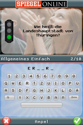 Einfach mehr wissen! Mit dem SPIEGEL ONLINE Wissenstrainer testen Sie Ihr Allgemeinwissen in den spannend aufbereiteten Themengebieten Politik, Panorama, Sport, Kultur oder Wissenschaft. Erspielen Sie in drei abwechslungsreichen Spiel-Modi immer mehr Punkte und gewinnen Sie dadurch Medaillen, um weitere Ränge zu erklimmen. Der SPIEGEL ONLINE Wissenstrainer macht nicht nur Spaß, sondern trainiert auch auf spielerische Art Ihre grauen Zellen. Stellen Sie sich der Herausforderung, lösen Sie Frage um Frage und steigen Sie so zum 'Genie' auf. Features: Über 1.000 Aufgaben und Fragen aus den populären Themengebieten Politik, Panorama, Wissenschaft, Sport und Kultur Erspielen Sie verschiedene Ränge und Medaillen und steigen Sie so immer weiter auf Anspruchsvoller Schwierigkeitsgrad sorgt für echte Langzeitmotivation Abwechslungsreiche Spielmodi Zeigen Sie all Ihren Freunden mit Facebook-Connect was Sie draufhaben!...